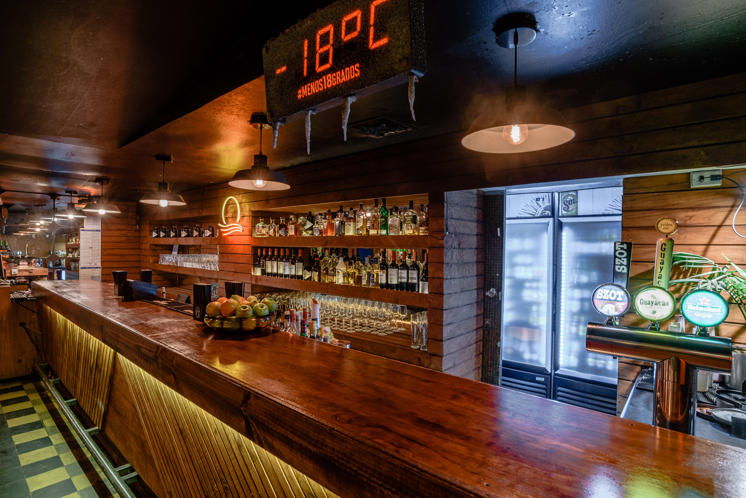 Mesas tipo barra en espacio climatizado a gusto del comensal